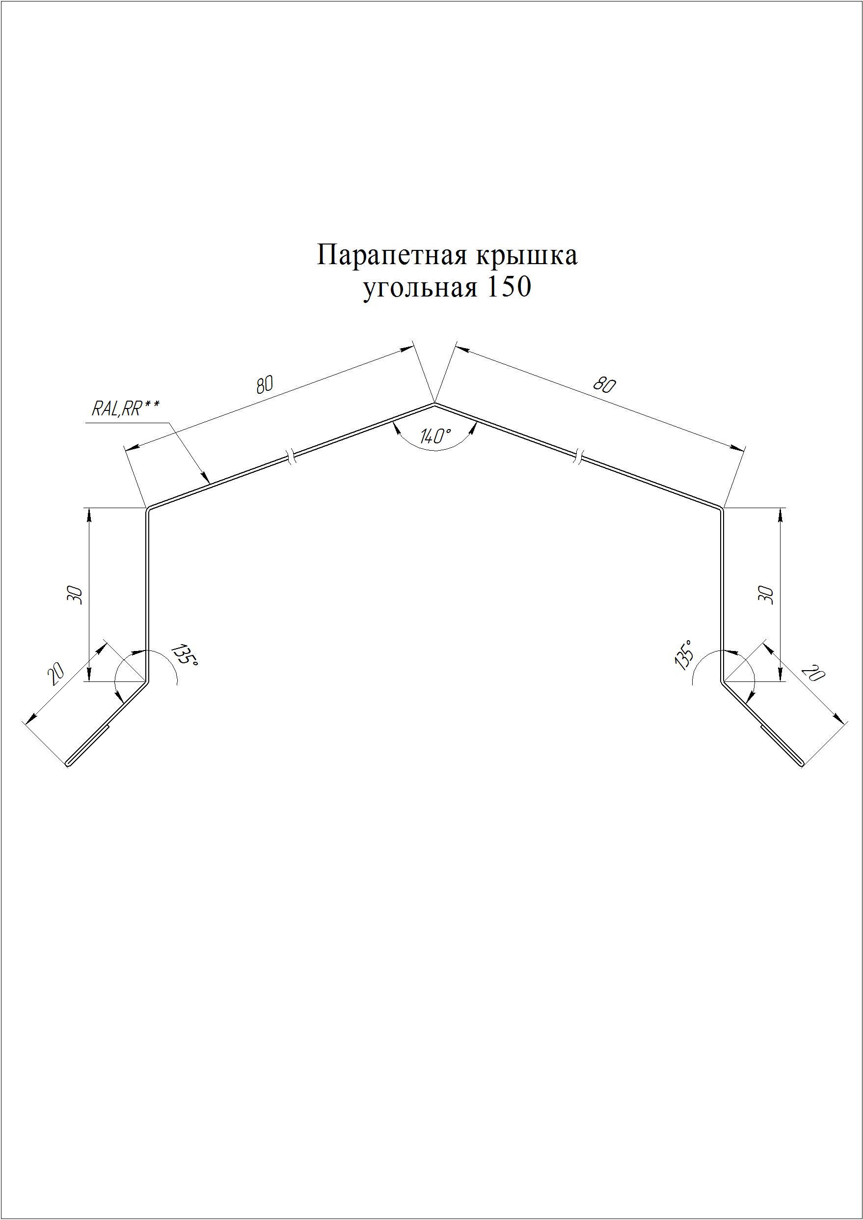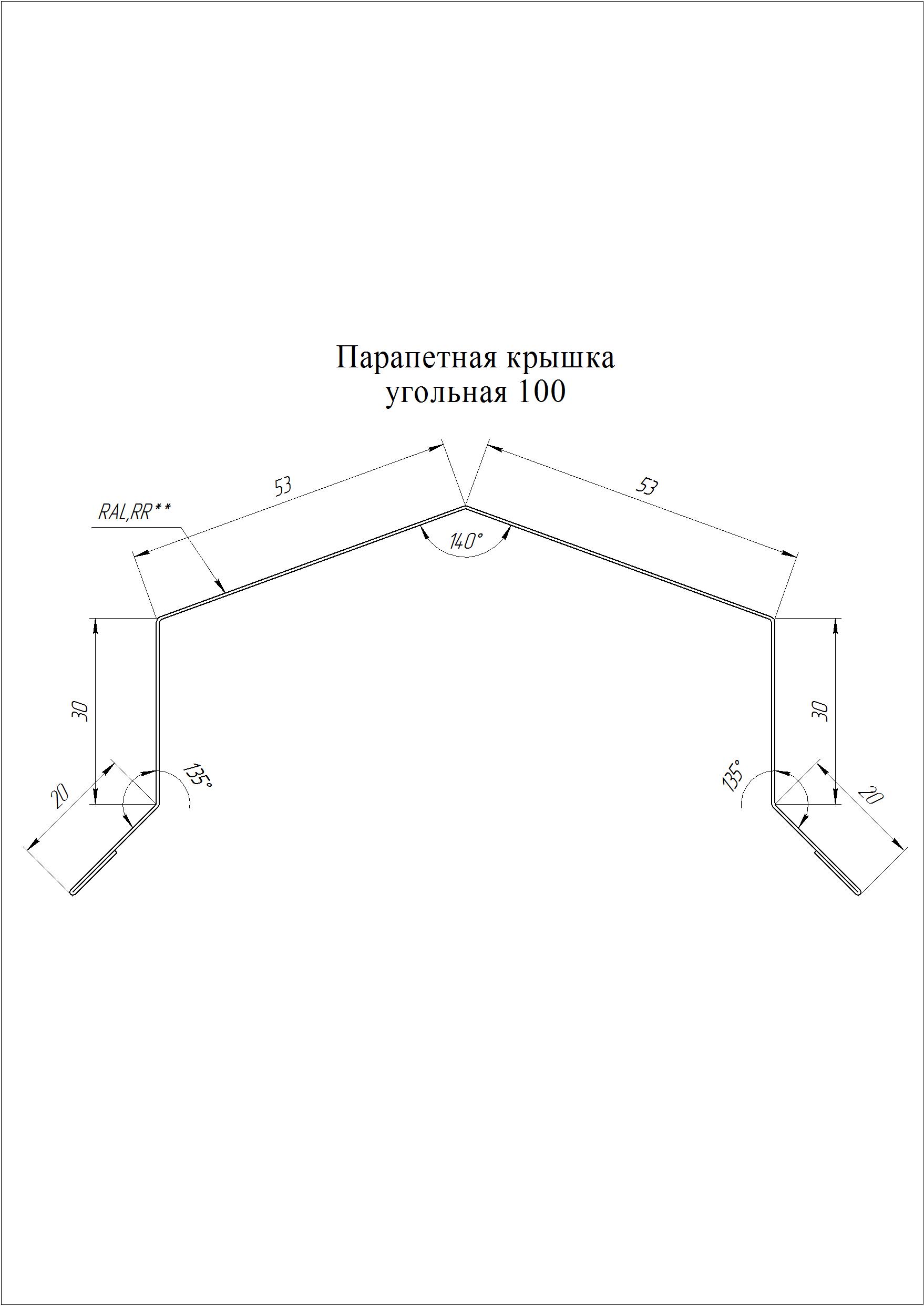 Парапетная крышка угольная 125мм