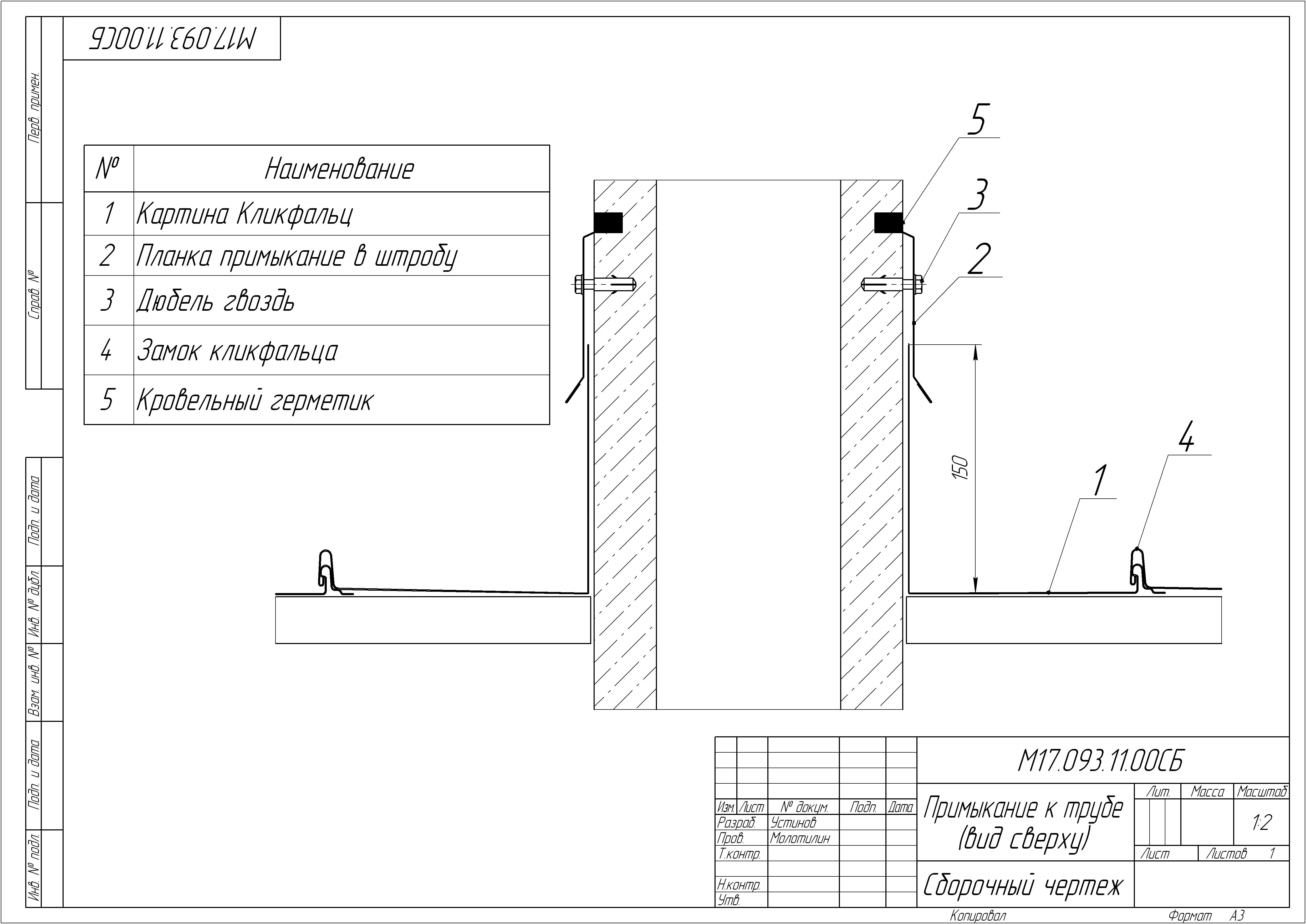 Планка примыкание верхнее к трубе фальц
