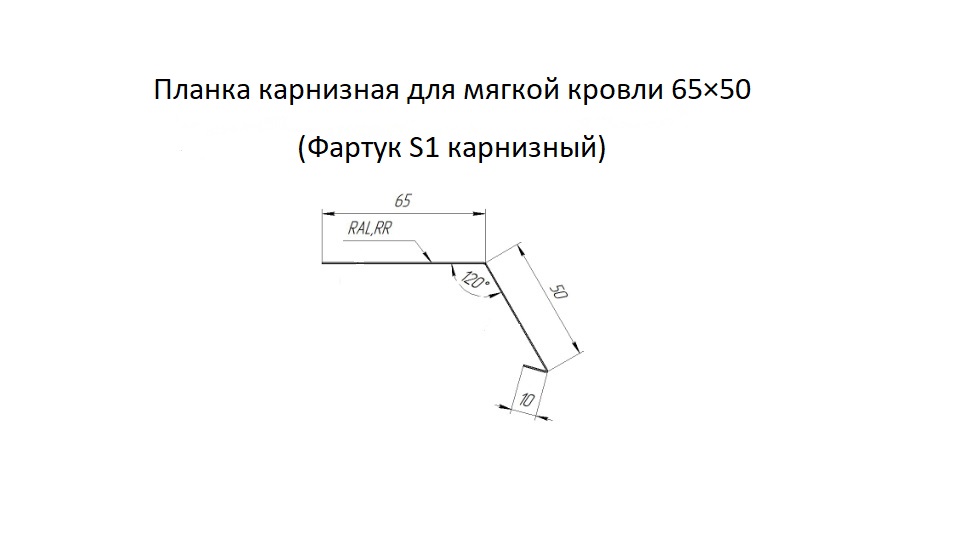 Планка карнизная для мягкой кровли 65х50 (Фартук S1 карнизный)
