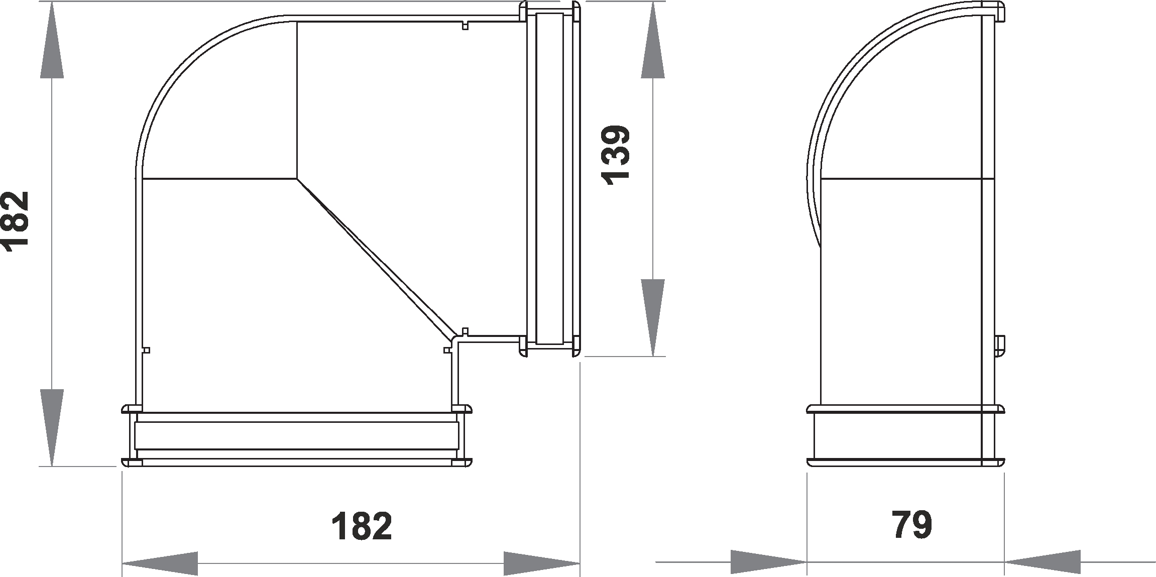 Чертеж колено сливное ПВХ 120/90